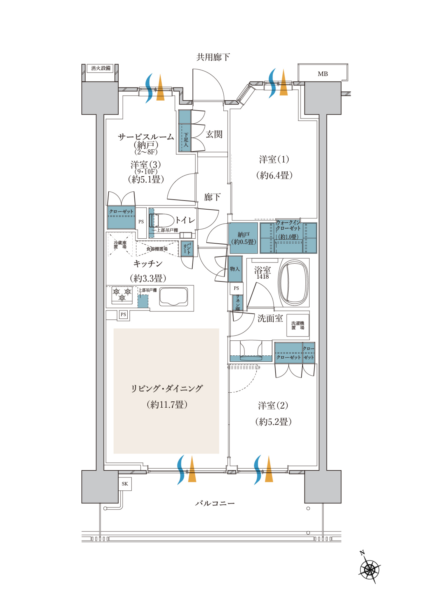 WIC=ウォークインクローゼット N=納戸
