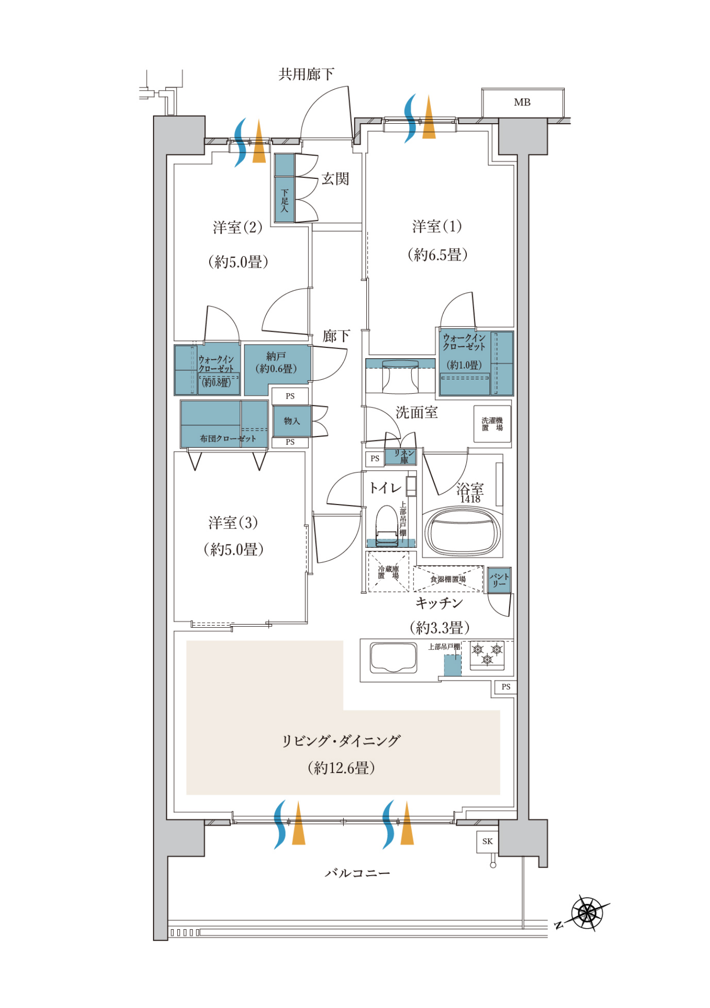 約12.6畳のLDと約6.5畳の洋室(1)をはじめ