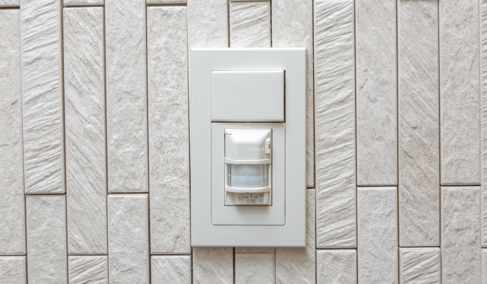 玄関の照明には、人の動きを感知すると自動的に照明を点灯させる人感センサー付オートスイッチを採用しています。